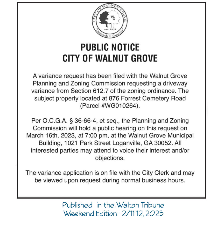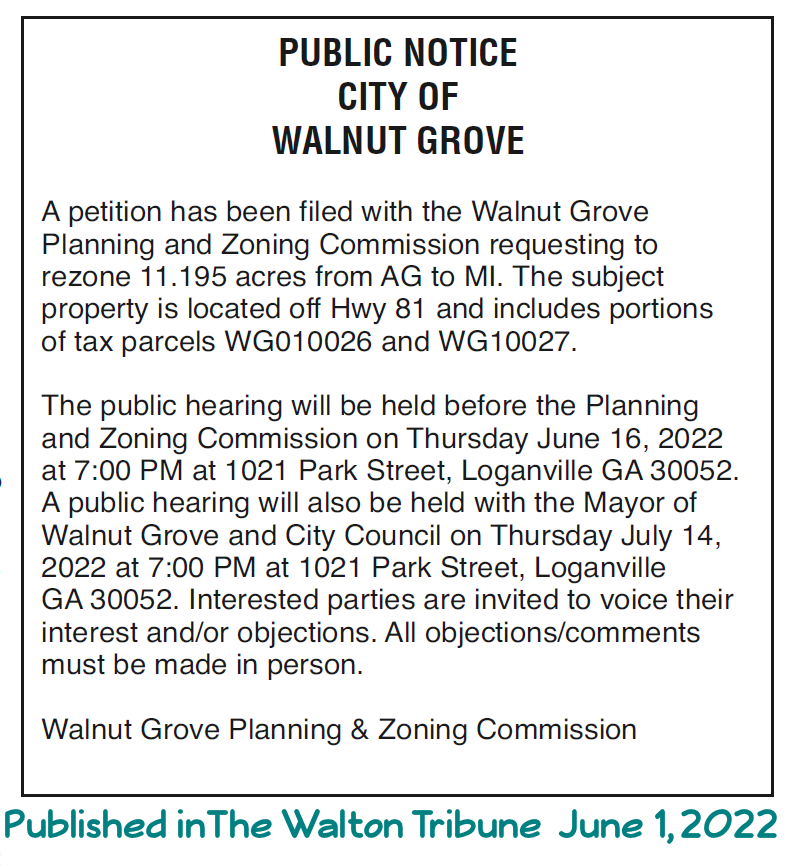 - Notice in Walton Tribune June 7, June 10, July 1, 2023