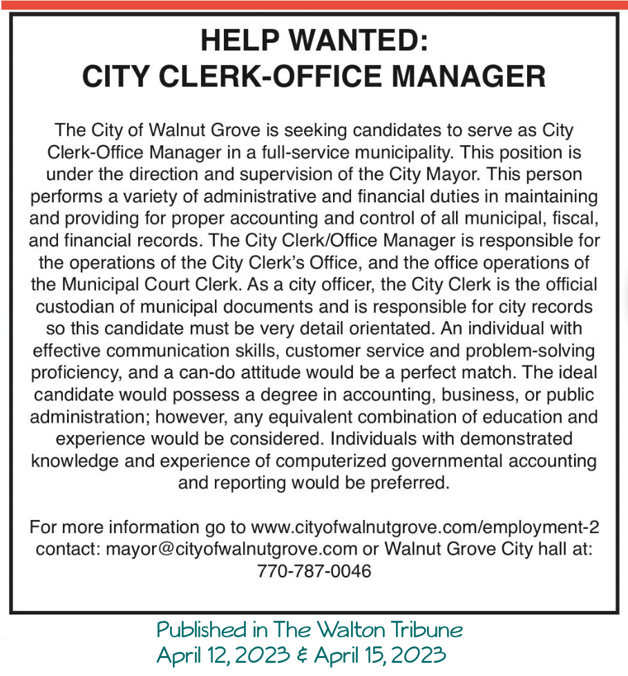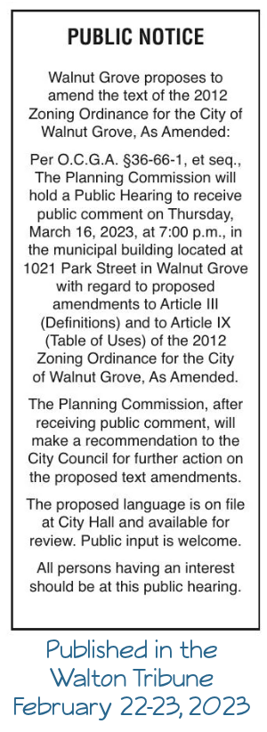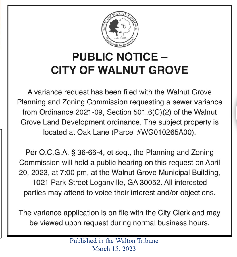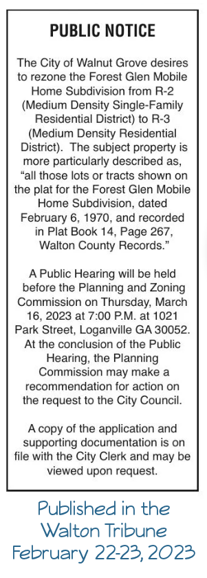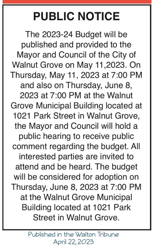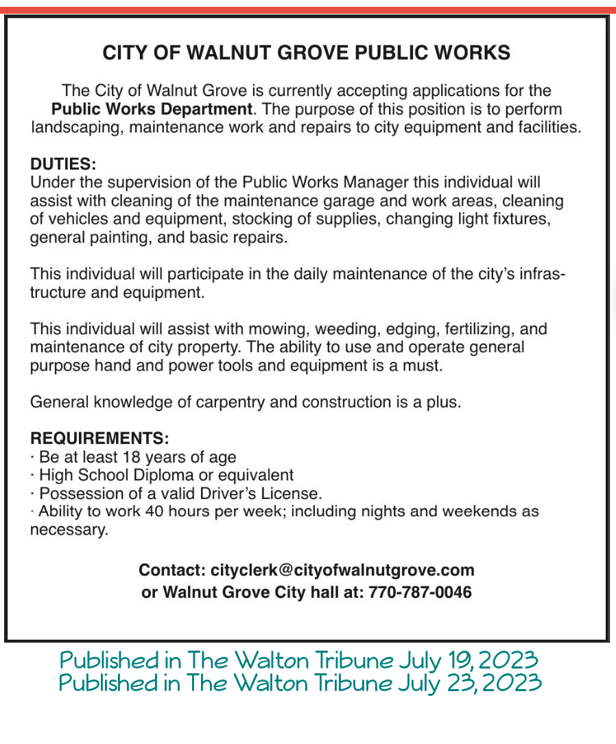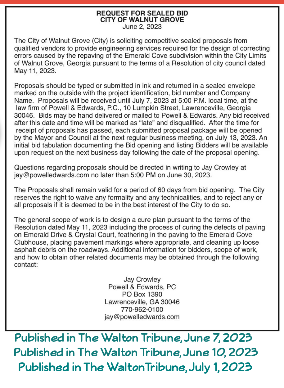 - Notice in Walton Tribune June 17, June 23 and July 1, 2023