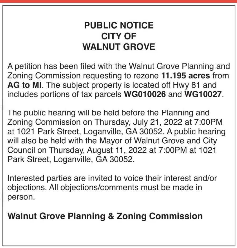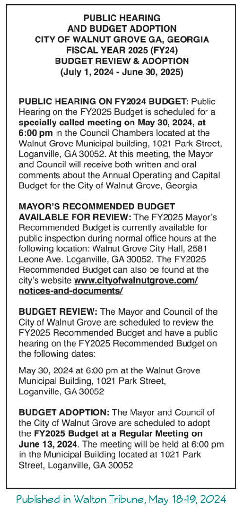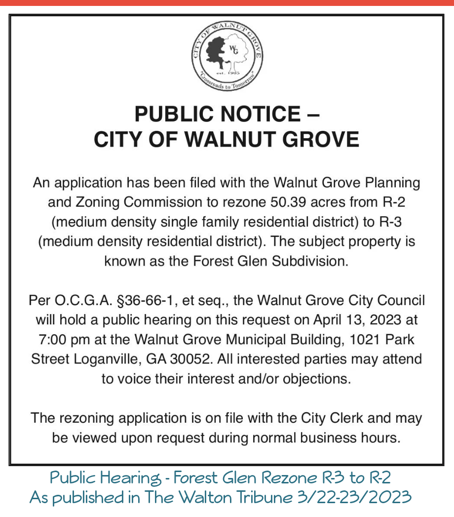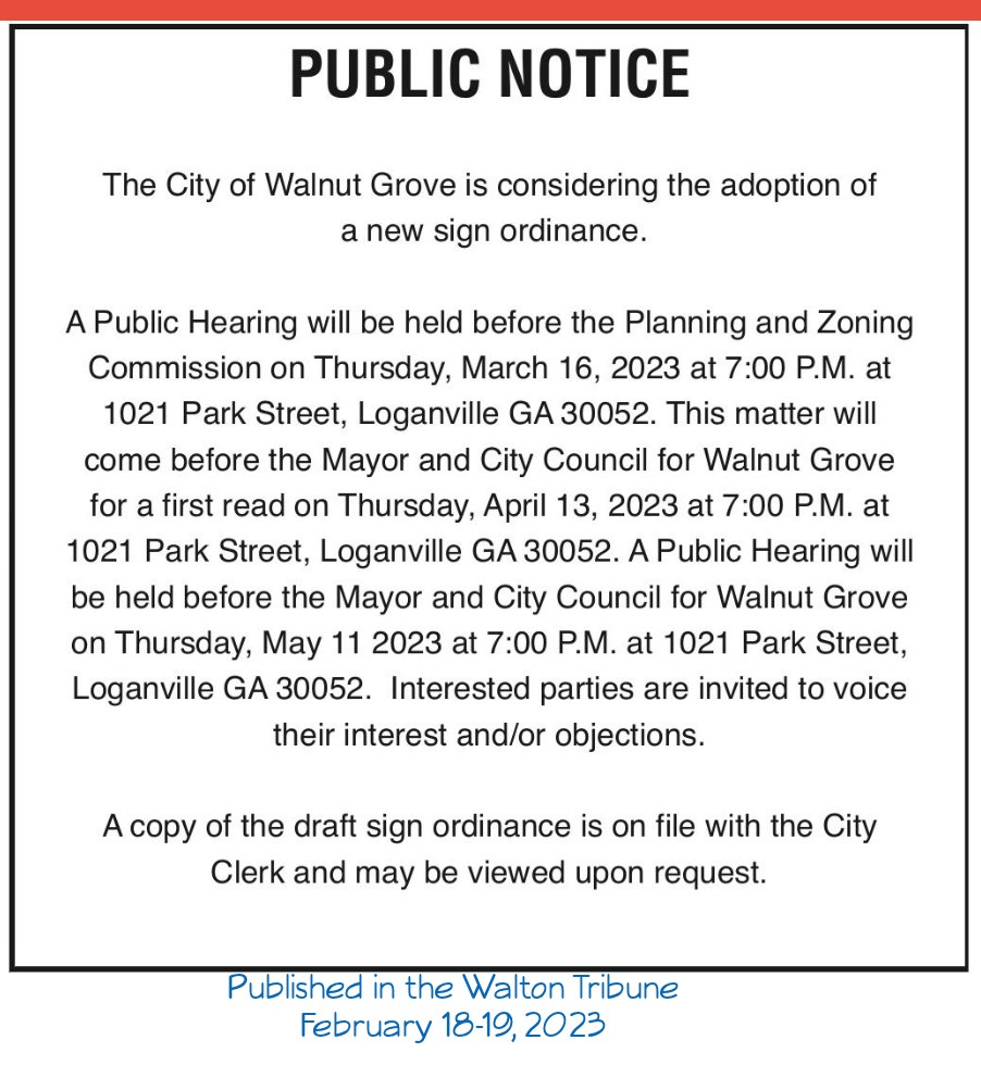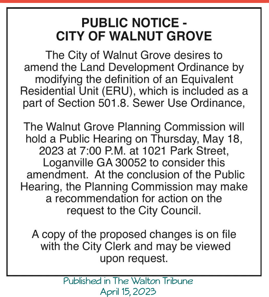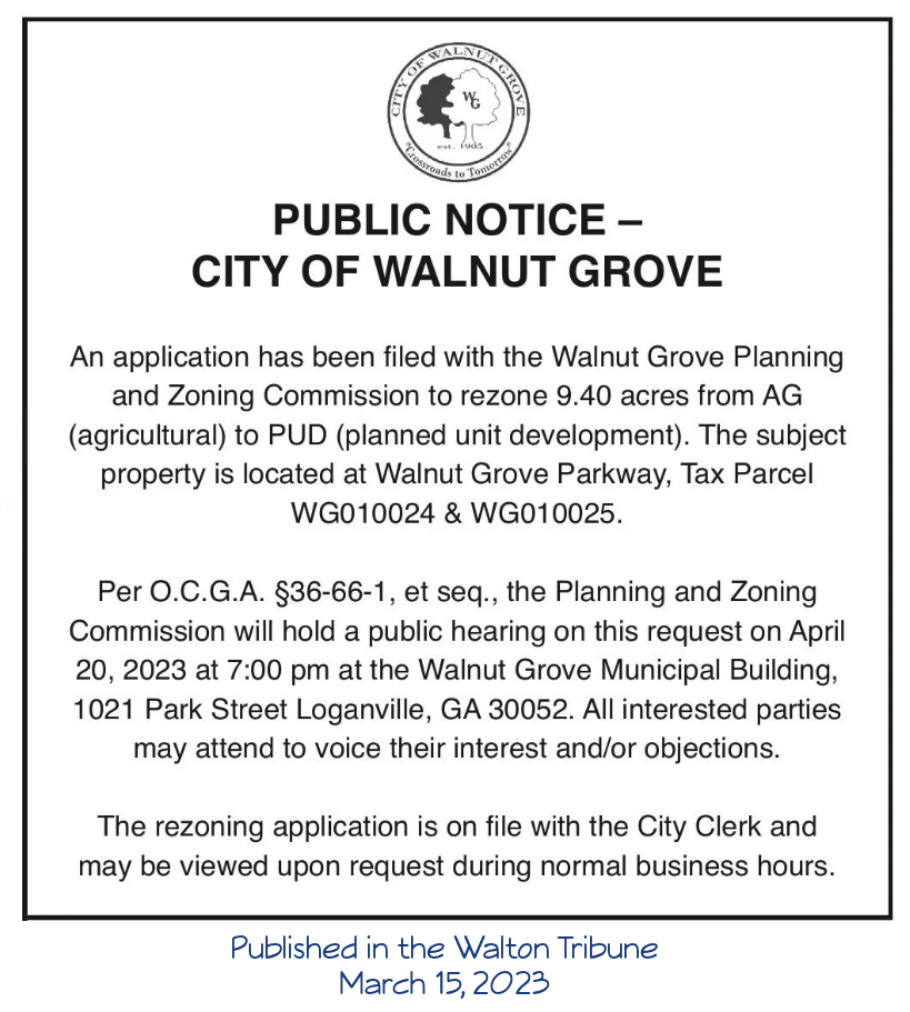 - Notice in Walton Tribune June 17, June 23 and July 1, 2023
