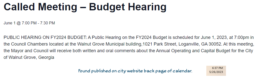 5/31/2023 - CANCELLED Budget Hearing Notices for June 1, 2023 Rescheduled to June 12 and June 29, 2023.