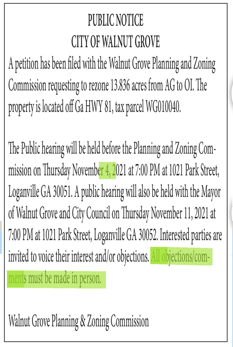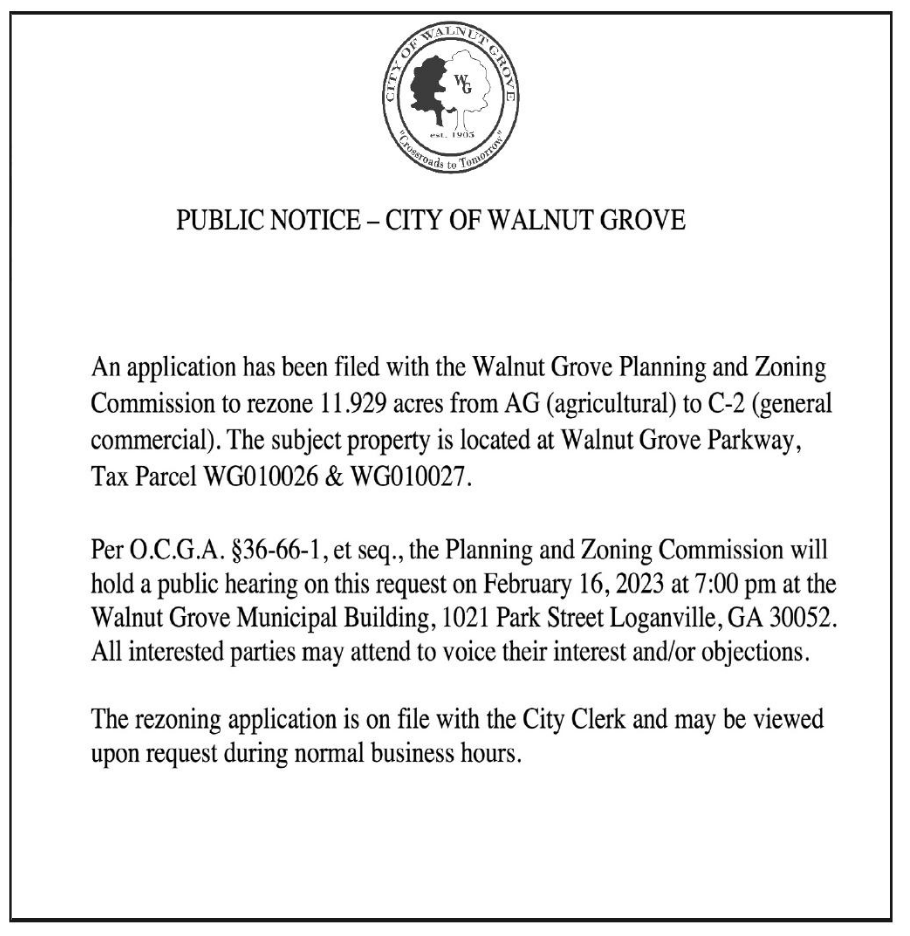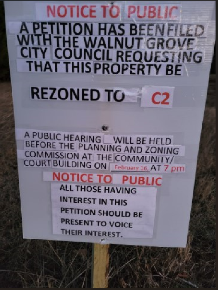 01/14/2023 NOTICE- Rezone Public Hearing for 2/16/2023 with P&Z RE: Office/Warehouse