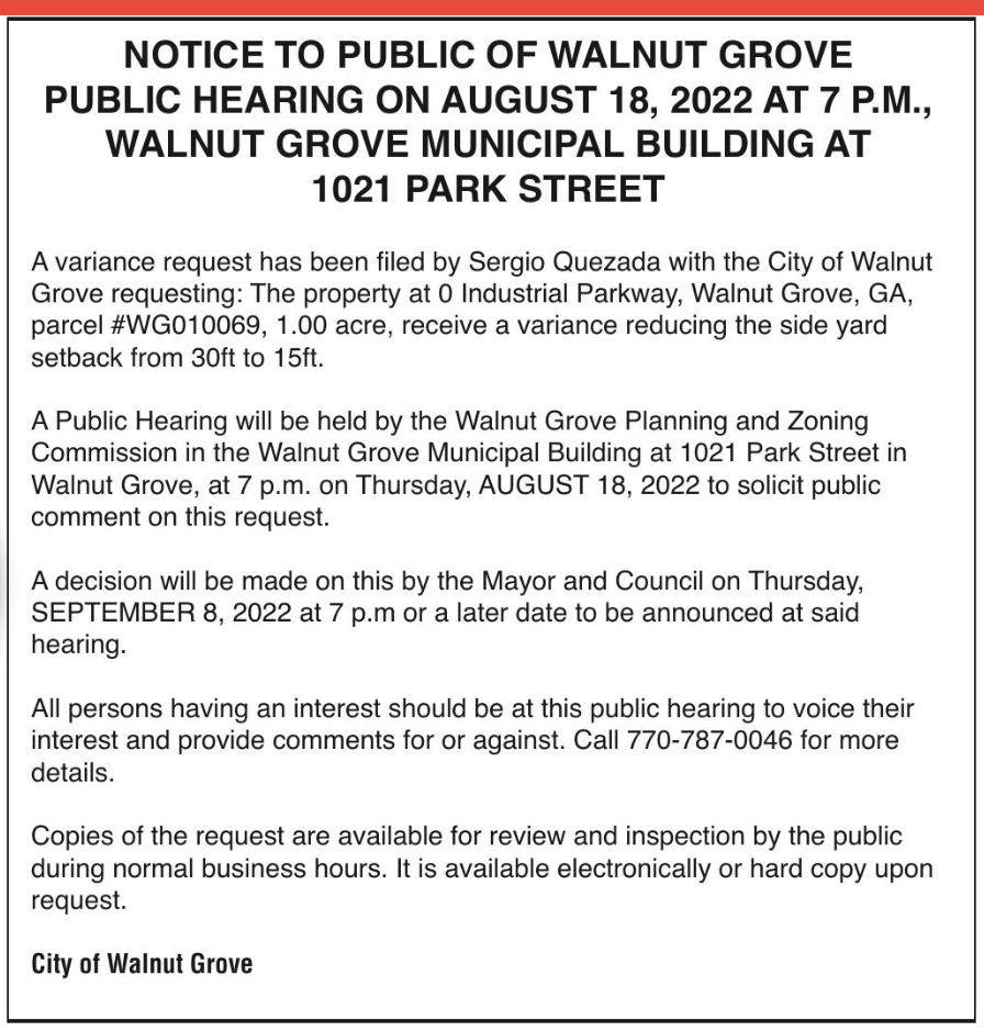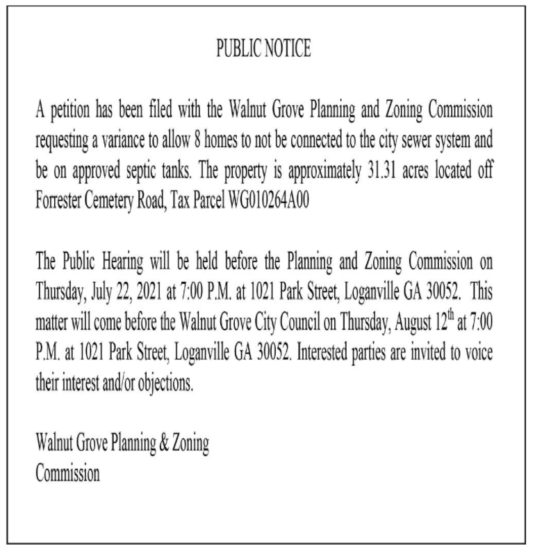 6/3/2023 - PUBLIC HEARING on Reliant Septic Variance and the Walnut Grove Bed & Breakfast Zoning changes (text)